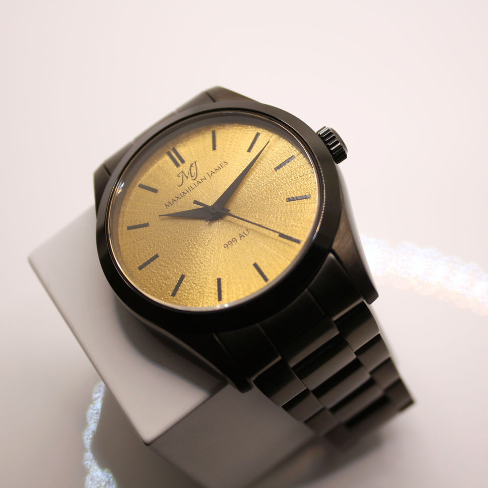 Eine Uhr wie keine andere - Maximilian James baut die weltweit ersten Armbanduhren mit hochreinen 999er Zifferblättern aus handgeschliffenem Osmium, Ruthenium, Tantal, Gold, Silber und Kupfer.